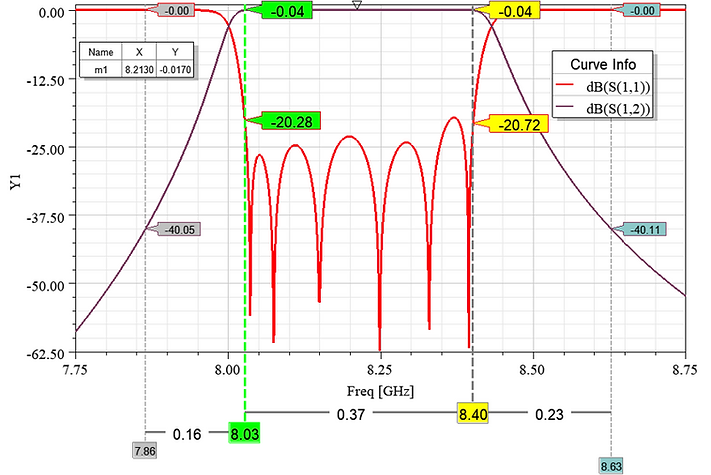 Rejection @ 7.86 GHz ,8.63 GHz > 40dB